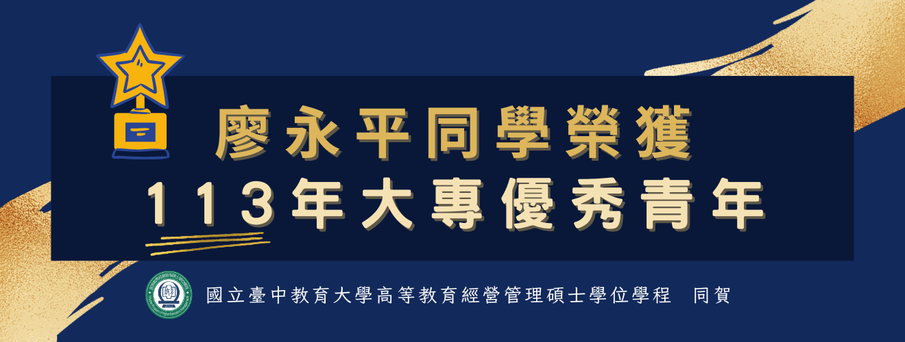 狂賀!本學程110級廖永平同學榮獲113年度大專優秀青年!